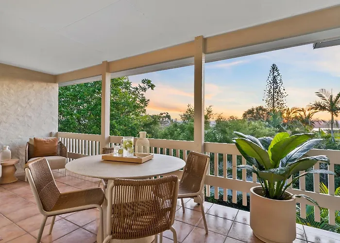 Das 110 m² große Apartment Sandbanks Noosa - Chic Coastal Retreat Minutes From The Beach mit Blick auf den See liegt 3 km weit weg vom Noosa-Nationalpark in Noosa Heads. Außerdem gibt es in diesem Apartment eine Terrasse mit Blick auf die Berge.